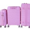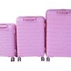 Pink luggage, trolley luggage, hardshell suitcase, spinner wheels, polypropylene luggage, travel set, 3-piece luggage, durable luggage, lightweight suitcase, combination lock, travel accessories, stylish luggage, telescoping handle, 360-degree wheels, pink suitcase set, carry-on luggage, checked luggage, luggage set with locks, pink travel set, hard shell suitcase, luggage for women, durable travel bags, trendy luggage set, secure luggage.