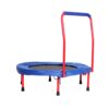 Get ready to bounce with the PLAYFREE Kids Trampoline! Designed for children 3 years and up, this 36″ trampoline is equipped with a secure handlebar for optimal safety (and peace of mind). With a weight limit of 50 kg, kids can jump, play, and let loose outside with this fun and safe trampoline! Foam cover on the round edge and also on the handle for comfort and safety.