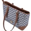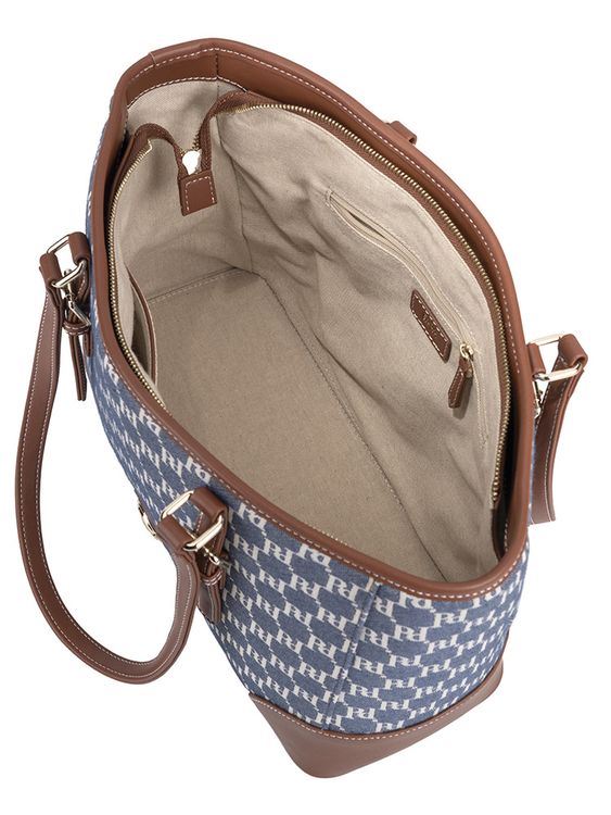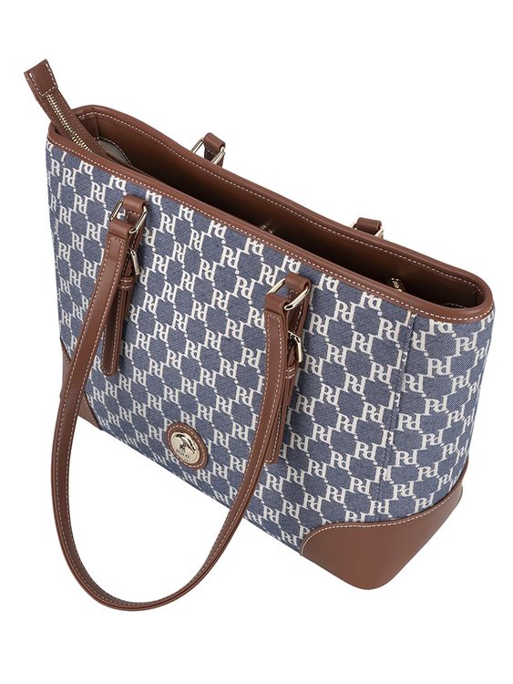 Transform your everyday style with this stunning Tote as your essential companion. Its main zipped section boasts an exclusive neutral light canvas lining, complemented by internal zip and slip pockets for seamless organization. Additionally, two slip compartments with magnetic closures provide effortless access and enhanced convenience. The tote features soft, long carry handles designed for comfortable shoulder use, complete with eye-catching buckle details and sophisticated gold hardware accents. Embrace timeless elegance with the Polo Premier accessory collection, showcasing a classic jacquard pattern available in Blue or Brown, accentuated by contrasting color trims.