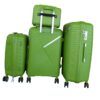 Travel in style and security with this 4-piece polypropylene luggage set, featuring three versatile suitcases in different sizes and a compact vanity case. Designed with a modern diagonal line pattern, this light green luggage set is crafted from durable PP hard-shell material, providing impact resistance and added longevity. The suitcases include built-in TSA-approved combination locks, zipper closures with sturdy metallic pulls and locking clasps for enhanced security.
