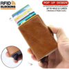 Easy To Use and Access to Cards– Just push up the bottom Button ,all cards Auto Pop up automatically, no more digging through your wallet to find the card you were looking for, push up button gives easy access to cards. Simple and elegant. Protected your cards and ID organized in your pocket.