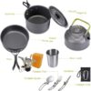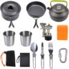 The set includes a reliable camping stove that efficiently utilizes fuel for cooking outdoors. It’s compact and easy to assemble, providing consistent heat for various cooking needs, whether boiling water or simmering meals.