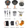 The Portable Camping Cookware Set is your ultimate companion for outdoor culinary adventures. Crafted for convenience and durability, this lightweight set includes essential cookware tailored for camping, picnics, hiking, and BBQs. It features a versatile camping stove, a non-stick pan set, cooking pots of varying sizes, and complete tableware complemented by kettle kits and a furnace head. Designed with portability in mind, this set ensures you can enjoy delicious meals wherever your outdoor escapades take you, all while keeping packing hassle-free.
