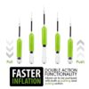 The double-action functionality of this hand pump for balls allows for air to be pumped with both a pushing and pulling action.