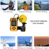 The fish finder portable detects and displays water depth, approximate fish location, fish size, short & tall weeds, sand & rocks on bottom.