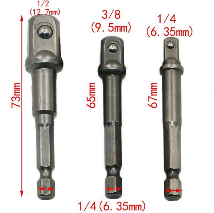 This power extension bit set adds versatility to your power drills with a socket adapter that has a hex bit for all power drill chucks great to use at home, in the workshop or warehouse for hobby, hardware, auto repair, and so much more.