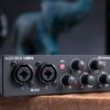 The AudioBox USB 96 audio interfaceâs two front-panel combo mic/instrument inputs make it ideal for singer/songwriters, podcasters, and guitar or guitar-bass collaborations. Simply connect a couple of mics and you have an easy-to-use stereo recording system. A mix control lets you control the level between the input signal and computer playback, without hearing annoying delays. You also get a pair of balanced line-level outputs, an ultra-loud, crystal-clear headphone out, plus MIDI I/O, so you can connect your favorite synth or MIDI controller. The result is a simple, affordable, mobile recording solution.