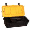 Offering two toolboxes in sizes 50cm and 32cm to accommodate a variety of tools and accessories. Each box is equipped with an onboard organizer and a removable tray to keep your items neatly arranged and easily accessible. These toolboxes are constructed from high-impact polypropylene with ABS plastic handles, ensuring durability and comfort during transport. With multiple compartments â 6 in the larger 50cm box and 11 in the smaller 32cm box â you have ample space to organize a wide array of tools. The toolboxes feature clip seals and are lockable for added security (locks not included).
