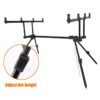 The Pro Adjustable Carp Fishing 4-Rod Pod is crafted from lightweight aluminum, providing a secure base for your fishing rods.
