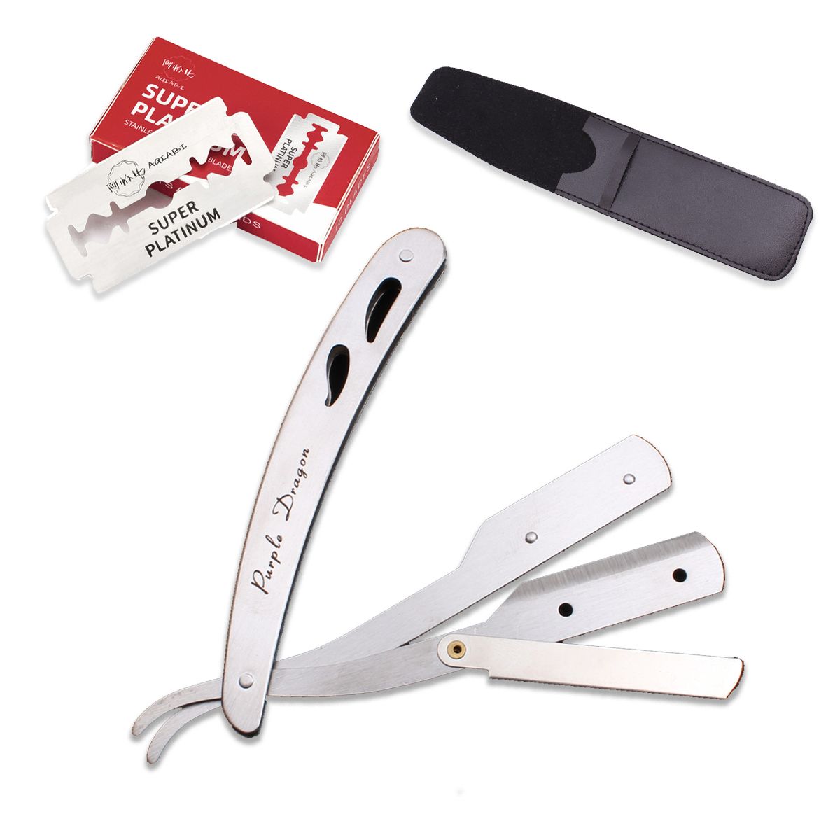 Profession Barber Straight Edge Razor Safety Stainless Steel Blade Set Gift – Silver