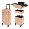 This is 73cm makeup case sits on four high-quality wheels for effortless rolling, removable 360 degrees 4-Wheel and 2 keys Smooth sliding pull handle with innovative hexagon tube ensures excellent steadiness. Handle on the very top for convenient carrying.