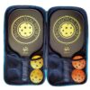 Pickle ball raquette set of 2 made from very durable graphitic Fiberglass face and honeycomb composition with edge protection for better durability.