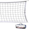 the volleyball net made of polyethylene, combined with the double stitched border. This makes the outer net tear-resistant, waterproof, weatherproof.