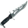 A fixed-blade knife with a pakkawood handle comes with a sheath.