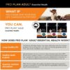 MAKING THE SWITCH TO PRO PLAN : By choosing to feed your dog PRO PLAN you can be reassured that our tailored nutrition will have a positive impact on your dog’s long-term health and well-being. Although you will be keen to see the difference PRO PLAN can make in your dog, please allow 7 – 10 days to transition from their current food. This enables your dog’s digestive enzymes to gradually adapt to the change in ingredient and nutritional content, assisting with the proper digestion of the food and helping prevent stomach upsets. Each day, simply feed a little less of the previous food and a little more of PRO PLAN until you are feeding PRO PLAN exclusively.”