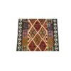 The Term Kilim is used to describe a pileless flat rug made for different use Kilims are generally woven with the slitweave technique. The slit refers to the gap left between two blocks of color. It is created by returning the weft around the last warp in a color area, and the weft of the adjacent color is later returned around the adjacent warp. Weavers pack the weft tightly to completely cover the warp and often favor diagonal patterns so as to avoid weakening the structure of the rug with vertical slits. It produces bold, sharp patterns that weavers enjoy creating with more freedom allowed than a plainweave. This is also why kilims are so closely associated with geometrical designs even though there are are kilims with floral designs as well.