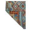 The Term Kilim is used to describe a pileless flat rug made for different use Kilims are generally woven with the slitweave technique. The slit refers to the gap left between two blocks of color. It is created by returning the weft around the last warp in a color area, and the weft of the adjacent color is later returned around the adjacent warp. Weavers pack the weft tightly to completely cover the warp and often favor diagonal patterns so as to avoid weakening the structure of the rug with vertical slits. It produces bold, sharp patterns that weavers enjoy creating with more freedom allowed than a plainweave. This is also why kilims are so closely associated with geometrical designs even though there are are kilims with floral designs as well.