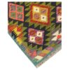 The Term Kilim is used to describe a pileless flat rug made for different use Kilims are generally woven with the slitweave technique. The slit refers to the gap left between two blocks of color. It is created by returning the weft around the last warp in a color area, and the weft of the adjacent color is later returned around the adjacent warp. Weavers pack the weft tightly to completely cover the warp and often favor diagonal patterns so as to avoid weakening the structure of the rug with vertical slits. It produces bold, sharp patterns that weavers enjoy creating with more freedom allowed than a plainweave. This is also why kilims are so closely associated with geometrical designs even though there are are kilims with floral designs as well.