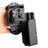 Front sight guide slot and magnets assist re-indexing of the slide for quick reholstering Spring-loaded design allows the holster to quickly swing open once retention lock is disengaged for rapid access.
