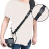 This camera strap is cushy neoprene padded, and wider, making it more comfortable for your neck and shoulder, ergonomic design makes your load feel lighter. A buckle enables lightning-fast adjustment of the belt length. Further, the 3-point clip and the solid metal connections between the shoulder pad and strap for maximum safety worry.