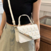 1 x Quilted Faux Leather Crossbody Bag with Geometric Design – White