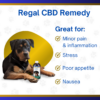 Regal CBD Remedy with delicious artificial beef flavouring has been specially formulated with CBD (cannabidiol) which is known for treating pain, inflammation, anxiety, and nausea. Additional benefits of this remedy could include anti-aggression, post-op recovery, and improved appetite.