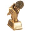 The award is made of durable resin and in an antique golden bronze finish. The design features a hand holding a microphone.