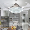 Blades swing out of unit horizontally to full fan sweep under centrifugal forces – light on/off and in fan on mode.