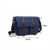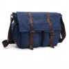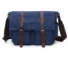 Retro Military Men’s Canvas Crossbody Bag Leather Canvas Laptop Bag – Blue