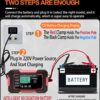1. The red clip is connected to the positive pole of the battery, and the black clip is connected to the negative pole of the battery. (At this time, the charger screen will display voltage, current, temperature and electricity in turn when lit)