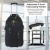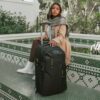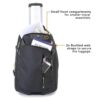 The Roller Duffel trolley bag features a spacious main compartment, reinforced padded carry handle, vertical and mesh pouches, buckled web straps, a concealed trolley system, and two wheels with feet. It also has side webbed buckles for compression and comes with a metal padlock set. The accompanying backpack has a laptop holder, USB port, cardholder, phone holder sleeve, and pen and pencil holder sleeve. It also has a front compartment and adjustable straps.