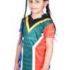 In summary, the Ronex South African Flag Sublimation Print Design V-Neck Tee for Kids & Youth Supporters is a visually appealing and comfortable T-shirt designed for the younger generation. The combination of the vibrant sublimation print and the modern V-neck design makes it a fashionable choice for kids and youth who want to proudly display their support and love for South Africa