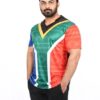 The use of sublimation printing ensures that the South African flag design seamlessly integrates into the fabric. This technique provides a vivid, fade-resistant image, maintaining the T-shirt’s vibrant appearance even after multiple washes