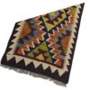 The Term Kilim is used to describe a pileless flat rug made for different use Kilims are generally woven with the slitweave technique. The slit refers to the gap left between two blocks of color. It is created by returning the weft around the last warp in a color area, and the weft of the adjacent color is later returned around the adjacent warp. Weavers pack the weft tightly to completely cover the warp and often favor diagonal patterns so as to avoid weakening the structure of the rug with vertical slits. It produces bold, sharp patterns that weavers enjoy creating with more freedom allowed than a plainweave. This is also why kilims are so closely associated with geometrical designs even though there are are kilims with floral designs as well.