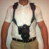 The Safari Pro Binocular and Camera Harness with a camo back pocket is designed for outdoor enthusiasts seeking comfort and durability. This award-winning harness by Safari features a high-quality, lightweight design ideal for carrying binoculars, cameras, and rangefinders. With an exclusive weight distribution system that shifts the load to your back and shoulders, it allows for extended wear without strain, even with heavier gear. The harness is equipped with a sweat-resistant padded back and a secure pocket for easy storage. Compatible with most cameras, binoculars, and rangefinders, this versatile harness is easy to use and comes with a 2-year warranty for peace of mind.