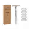 Safety Shaving Razor Set Long Handle Stainless Adjustable Double Edge – Silver