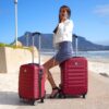 Its sleek design of the water-resistant hardshell casing and retractable telescopic handle ensures simplicity for traveling while charging your devices on the go with its usb charging ports. Our city functionality anti-slip 360 spinner wheels, and built-in tsa lock give you the freedom to travel anywhere with our innovation of security, lightness, and capacity that reduces ocean-bound plastic for you to travel guilt-free