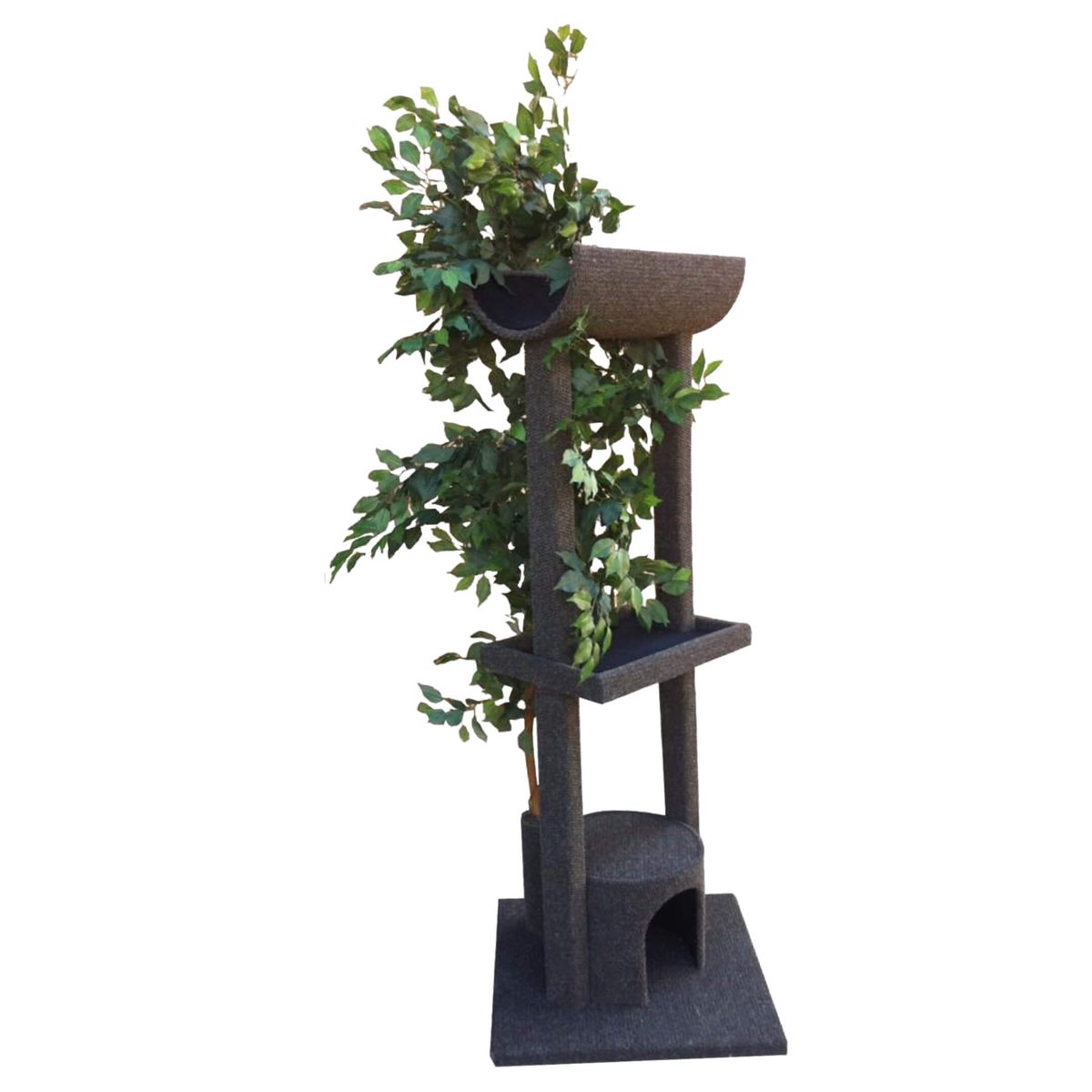 The Nature s Answer cat tree brings the outdoors indoors for your furry family with its faux ficus tree. In addition, the spacious cubby on ground level provides extra privacy for the shy or older cat whilst the half tunnel with its plush fleece fabric liner is the perfect spot for lounging on those lazy days. A large tray at mid-level for relaxing or just hiding amongst the foliage. Well suited for the large breed cats or households with multi generations, the tree and all its extras will keep your kitty occupied and engaged. The tree can be replaced with another.