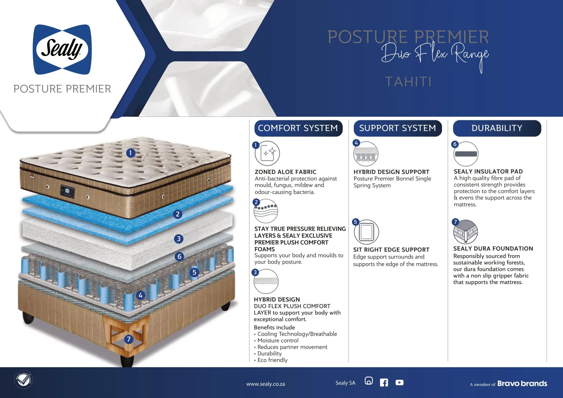 The Sealy Tahiti Ultra Plush Pillow Top Single Posture Premier base set is the epitome of luxury and comfort. Wrapped in zoned Grey Aloe knit fabric, it not only exudes elegance but also offers anti-bacterial protection, ensuring a clean and hygienic sleeping environment. Crafted with Stay True pressure-relieving Ultra Plush comfort foams, this bed set is designed to provide exceptional support while cocooning you in a cloud-like comfort. The plush pillow top adds an extra layer of sumptuousness, making bedtime an indulgent experience. With its thoughtful design and Sealy’s renowned expertise, the Tahiti Firm Bed promises not just a good night’s sleep but a rejuvenating, restorative rest, night after night.