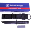– 5 7/8″” black powder coated 440C stainless bowie style blade with “”Search & Rescue”” and Smith & Wesson logo etching.