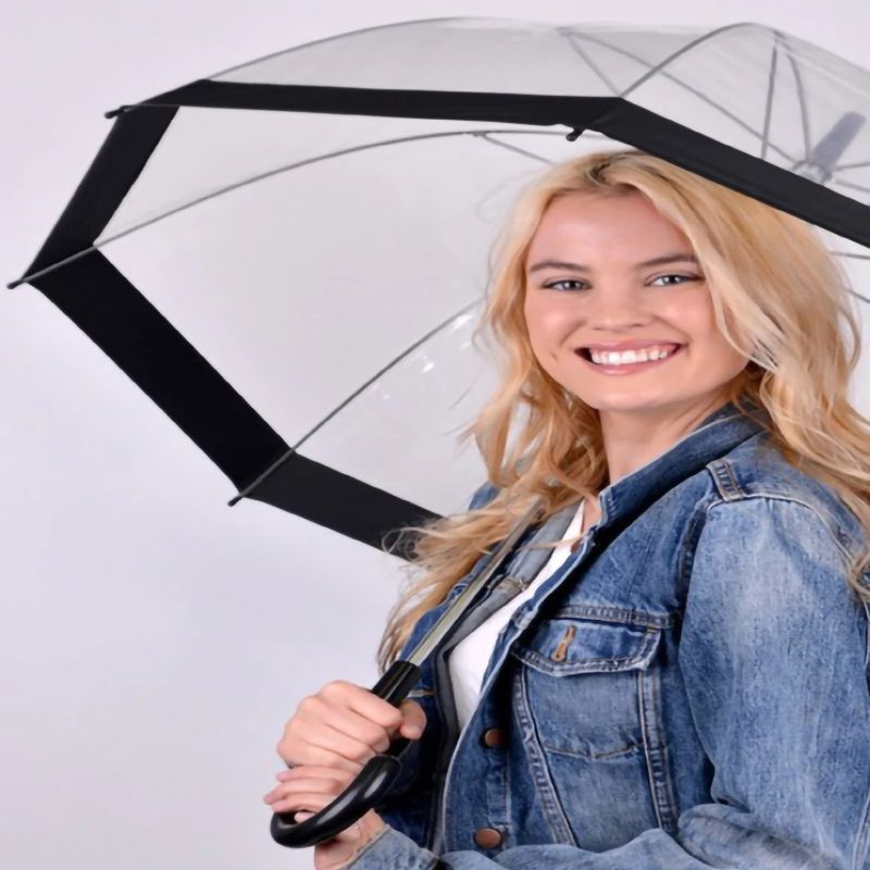 See-Through Transparent Stylish Colored-Border Mushroom Shape Dome Umbrella – Black