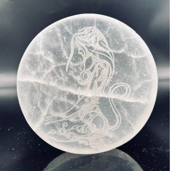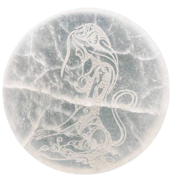 1 x Selenite Charging Plate – Woman with Cat Tail