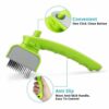 Stop messing around with a grooming brush that gets bogged down. This pet grooming brush removes loose hair & then quickly cleans itself. Once the built-in button is pressed, the stainless steel pins retract back into the box. As they do so, pet hair buildup slides right off of the pins. Cleaning the handheld pet brush really is that easy.