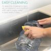 Side cut-out handles along the base for easy lifting; non-skid rubber feet for secure placement; easy-to-clean design; hand wash only