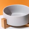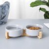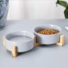 Upgrade your pet’s dining experience with our set of 2 Ceramic Cat Food Bowls in stylish grey, featuring a spill-proof design and easy-to-clean properties, complete with a sturdy solid wood stand.