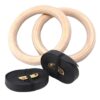 – This set includes two indoor gymnastics rings made of wood, accompanied by durable polyester straps for muscle-building exercises.