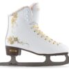 The SFR Glitra is a stylish figure ice skate, ready to hit the ice with a pre sharpened blade as standard. With gold glitter coated print detail and laces, plus a comfortable faux fur lining, the SFR Glitra is a must have for any ice skate enthusiast. Perfect for beginner and intermediate ice skaters.