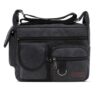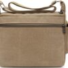 Vintage Design The messenger bag is made of water-resistant canvas and premium leather, which is soft and smooth touch. The square appearance and the front decorative leather buckle make it a vintage look. Moreover, there is a leather pocket at the front of the messenger bag. It could hold your small accessories