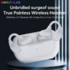 – Utilizes air conduction technology that doesn’t enter the ear canal, minimizing the risk of ear damage during extended use.