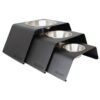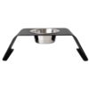A minimalist design that not only brings style to your home, but also serves as a durable, functional feeder for your dogs to enjoy. We have considered all outcomes and details for this new bowl stand to satisfy both dog and home owner. Our new Frankie bowl stand is made from 100% mild steel that is powder coated in black. It is also treated with a process called E-coating which makes it resistant to corrosion. The elevated feeder ensures your dog can eat comfortably and reduces strain on their necks while eating. The inside of the bowl stand is fitted with a rubber ring to ensure bowls do not rattle while your dog eats. The stainless steel bowls are removable and easy to wash. The bottom of the feeder comes with slip-proof rubber feet to stop it from moving around.